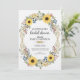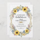 Brighten the celebration with this cheerful sunflower bridal shower invitation featuring a beautiful floral wreath design. Vibrant yellow sunflowers, blueberries, and sage greenery create a rustic farmhouse aesthetic perfect for summer or fall celebrations. The natural botanical arrangement brings warmth and joy to this country-inspired invitation design.