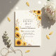 This charming sunflower bridal shower invitation features a stunning corner cascade of bright sunflowers with cream daisies and autumn foliage. The asymmetric botanical design with scattered petals creates an organic, nature-inspired look perfect for rustic outdoor celebrations. Ideal for summer or fall country weddings with a warm, inviting aesthetic.