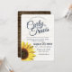 Western Country Sunflower and rustic barn wood wedding invitation suite with beautifully bold script names in pink to add extra charm. Contrasting dark barn wood design on back side of card.