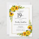 Pretty yellow sunflower floral 19th birthday invitation. Yellow peonies and white daisies mingle with the sunflowers. A rectangular gold frame gives it an elegant vibe. Very easy to customise. That back is white with a sunflower bouquet. This is a perfect for a summer birthday celebration. This item is party of the Yellow Sunflower and White Daisy Collection.