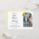 A sunflower, with its face of gold and brown, is a radiant bloom that evokes the warmth and joy of long summer days. Its vibrant presence discovers a tranquil harmony when paired with the pristine white petals of a daisy, a flower known for its simple beauty and cheerful disposition. The contrasting colours of these two distinct flowers create a captivating visual, a delightful interplay of light and shadow that is pleasing to the eye. Imagine this scene captured in delicate watercolor, the brushstrokes soft and flowing, bringing out the unique textures and hues of each bloom. Picture a composition featuring a sunflower, a white daisy, and an elegant arch, forming a refined and memorable photo invitation, perfectly suited for a special occasion.
