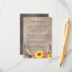 The front of the card is decorated on the bottom of the page with sunflowers and horns with pops of pink flowers and greenery over a wood background. Edit any or all of the text. You can add any details you need, for example: reception information, adults only event, website address, registry information, accommodations, dress code, cash bar, etc. The back of the invitation has the same watercolor wood background. This card matches a collection in my store.