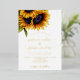 Luxury elegant summer or autumn fall wedding stylish invitation template featuring a beautiful sunflowers bouquet and a trendy modern real gold foil calligraphy script. Easy to personalise with your details. +++++++++ The invitation is suitable for elegant summer or autumn-fall rustic country weddings, backyard ceremonies, and micro weddings.