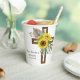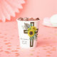 Beautiful, cheerful sunflowers, eucalyptus, and pampas grass displayed on a dark wooden cross create this floral design for your baptism cups. The large size of the cross creates an updated look. The name and baptism date are also displayed on the front and back of the cup. This paper cup is perfect for any late summer or autumn baptism.