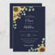 Sunflower Eucalyptus Botanical Navy Blue Wedding Invitation