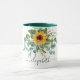 Decorated with a watercolored sunflower and eucalyptus greenery. A transparent background. Personalise and add a name. The name is written with a modern hand lettered stylie script with swashes. To keep the swashes only delete the sample name, leave the spaces or emoji's in front and after the name.