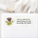 The left side of these return address labels feature a watercolor image of a cute Pug dog among scattered sunflowers and eucalyptus leaves. Subtle gold confetti adds interest to the background. Your custom text is in green and dark grey at the right.