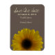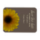 A save the date magnet featuring an image of a sunflower over a brown background. Personalise the text. Look for matching wedding invitaitons and more at Jill's Paperie.