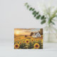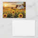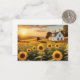 A white farmhouse sits on a hill overlooking a vast sunflower field at sunset with rolling hills in the background, creating a warm, idyllic rural scene with a peaceful atmosphere.