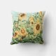 Giant sunflowers in a field. Pretty summer nature yellow teal art photo decorative outdoor throw pillow. Beautiful elegant floral decor. Country rustic flowers design. Image copyright Marg Seregelyi Photography.