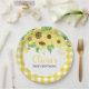 Sunflower Floral and Plaid Summer First Birthday Paper Plate