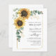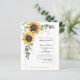 Create a modern Sunflower Floral Budget Wedding invitation card with this cute template featuring beautiful rustic floral bouquet, geometric gold effect frame, with modern simple typography.