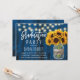 Sunflower Floral Jar Rustic Navy Barn Wood Graduation Party Invitations.