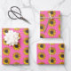 Sunflower Floral Pattern On Hot Pink Wrapping Paper Sheet