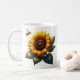 A cheerful summer sunflower with a bumblebee brings the colour of a summer garden inside.