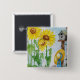 Original watercolor painting by Sandra Gale, featuring a group of sunflowers and a gardener's bag, hat and shovel. Great design for gardeners of all types and a perfect image of summer!