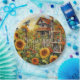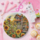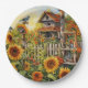 Sunflower Garden 9 Bird Houses Blue Birds Paper Plate
