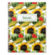 This garden print all over notebook/journal features a vegetable fruit and sunflower. A summer garden design that will appeal to anyone who "grows their own food" Personalise with your own text.