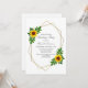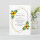 Design features sunflowers and botanical leaves over a printed gold coloured geometric frame.