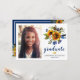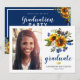 Watercolor boho navy & yellow graduation invitation featuring a classic white background that can be changed to any colour, a photo of the graduate, a sunflower floral display, feathers, and an graduation party template. You will find matching items further down the page, if however you can't find what you looking for please contact me.