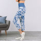 Capri leggings with a pattern of sunflowers and bunches of grapes on a blue background. An arts and crafts pattern originally designed by the British artist William Morris (1834-1896).