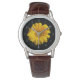 The watch looks really great! Very sharp and well done. The leather band is really nice, though for a man's watch I think it should be longer. Unfortunately, it isn't big enough for my husband's wrist but I will get a replacement because he is very excited to wear it!