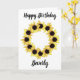 This birthday card features a wreath of sunflowers around a photo template with editable black Happy Birthday & name typography on a white background with room for a personalised message inside.