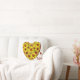 Decorate your home decor with this eye-catching sunflower heart throw pillow. This design prominently incorporates vivid amber elements. Express yourself by experimenting with different background colors and added text.