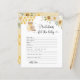 Sunflower Honey bear baby predictions card. Bee baby predictions card.