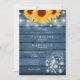 Pretty sunflowers, string lights and mason jars decorate your special wedding celebration details set in elegant gold typography on a blue rustic wood background. The reverse features your monogram initials set within a matching sunflower. Designed by Thisisnotme©