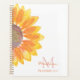 This floral planner is decorated with a yellow watercolor sunflower and monogram in stylish typography.