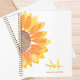 This botanical meal planner is decorated with a yellow watercolor sunflower and monogram in stylish typography.