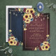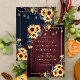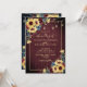 Sunflower Navy Blue Burgundy Floral Wood Wedding Invitation