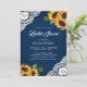 Sunflower Navy Blue Photo QR Code Bridal Shower Invitation