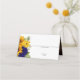 Sunflower & Navy Roses Rustic Place Card. Featuring a rustic wood plank background with navy roses and yellow sunflowers.