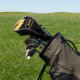 Add some style to your golf bag with this beautiful personalised golf club head cover featuring a yellow sunflower on a black background and customised with your name or monogram initials. Great gift idea for any lady or sunflower-loving golfer in your life.