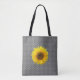 Sunflower on black & white chess pattern tote bag