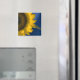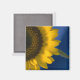 The pretty Sunflower on Blue Magnet makes great refrigerator or filing cabinet art for a flower lover, gardener or florist. This elegant sunflower magnet features a close up macro nature photograph of a yellow sunflower blossom and green leaf on a blue background.
