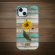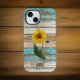 Sunflower on Faux Green Weathered Wood Initials iPhone 15 Case