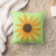 Painting of a sunflower with yellow orange petals and a rustic brown centre, printed on square pillows. The background colour can be customised.