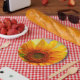 An elegant sunflower on a paper plate.