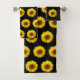 Sunflower Pattern on Black Bath Towel Set