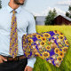 A farm themed, purple tie with a pattern of sunflowers, lambs and goats. Colours are yellow, brown and tan on a dark purple background. The unique unisex design is perfect for events attended by farmers and homesteaders. This design is perfect for tie-wearing women as well.