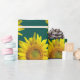 Sunflower wrapping paper.  Quality roll of gift wrap paper with a dark teal background colour, and pretty yellow sunflower pattern.
