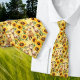 A farm themed, yellow tie with a pattern of sunflowers, lambs and goats. Colours are yellow, brown and tan on a pale yellow background. The unique unisex design is perfect for events attended by farmers and homesteaders. This design is perfect for tie-wearing women as well.