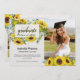 Celebrate your achievement with our "Sunflower Photo Script Graduation Announcement"! Personalise this announcement with a cherished photo and share the joy of your graduation with friends and family. The elegant sunflower design adds a touch of sophistication to your special announcement. Whether for mailing or digital sharing, this customised graduation announcement is a beautiful way to mark this important milestone and invite loved ones to join in the celebration.