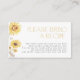Subtle and heartfelt, this enclosure card invites guests to contribute a cherished recipe in lieu of a traditional card—creating a thoughtful, lasting gift for the bride. The sunflower motif and gentle script styling carry through the joyful, natural tone of the event, while the coordinating reverse pattern adds a designer finish.