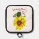 Transform your atmosphere with this cheerful yellow and orange sunflower pot holder. Easily switch up the vibe by adding personalized text and background color.