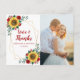 Sunflower Red Rose Geometric Photo Thank You Postcard