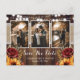 These rustic floral wedding save the date photo postcards featuring burlap, lace and barn wood background are ideal for a rustic-themed wedding party inspired by sunflowers and red roses.